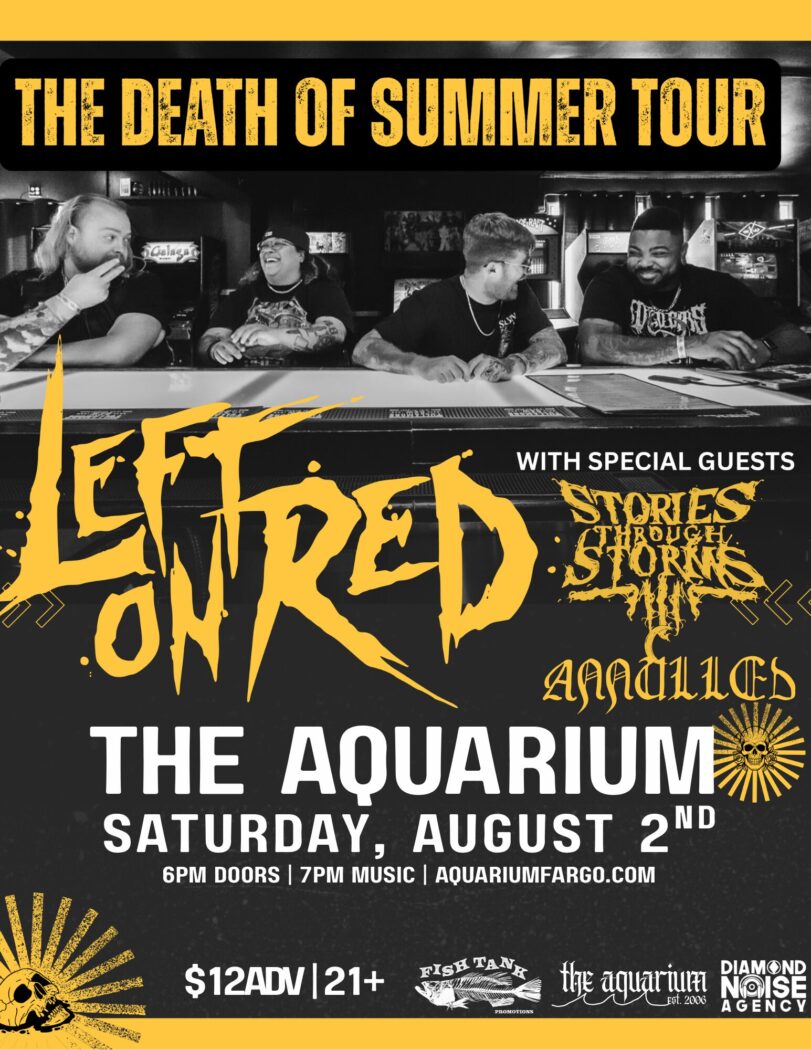 Left on Red on tour with Stories Through Storms with support from Annulled on Saturday, August 2nd at The Aquarium