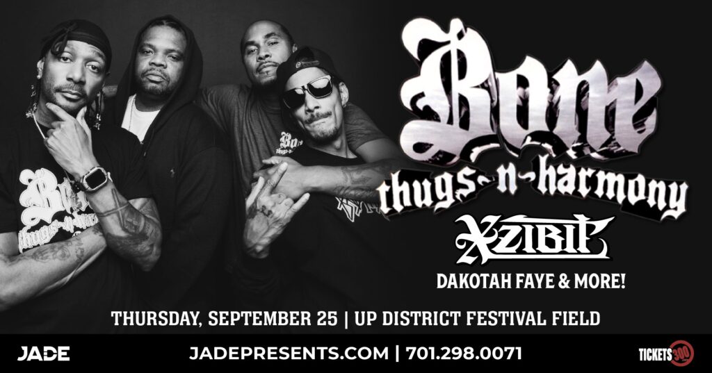 Bone Thugs-N-Harmony with Xzibit, Dakotah Faye & more TBA comes to UP District Festival Field on Thursday, September 25. Tickets on sale NOW at → bit.ly/422eDbQ. All Ages | Gates at 5PM | Show at 6:30PM