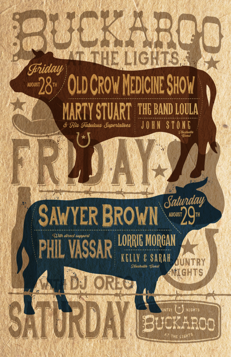 SECOND YEAR OF BUCKAROO BRINGS CLASSIC AND AMERICANA COUNTRY MUSIC TO THE LIGHTS Old Crow Medicine Show and Sawyer Brown to headline the two-night country music Festival performing on the MIDCO Stage at Essentia Health Plaza at The Lights. The two-night country festival will take place at Essentia Health Plaza at The Lights in West Fargo, ND on Friday August 28 and Saturday August 29.