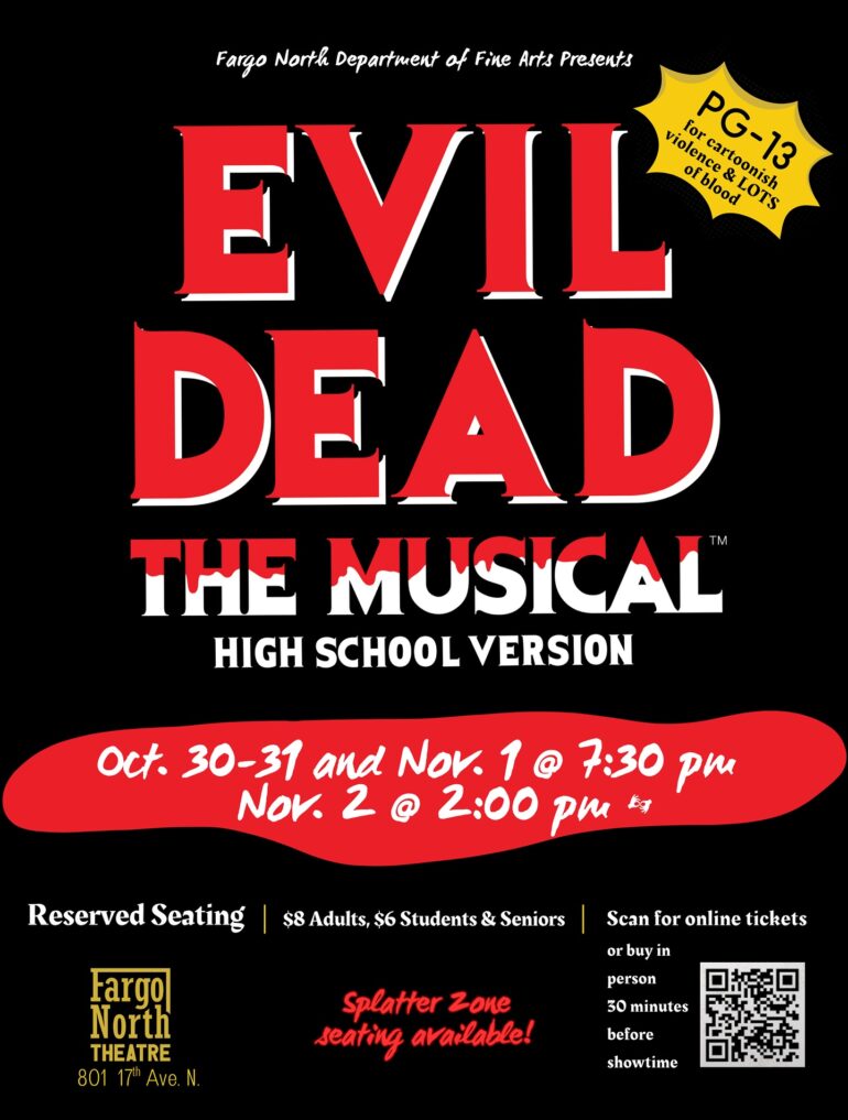 Fargo North High School’s production of Evil Dead: The Musical is based on the cult 80’s movie Evil Dead. It runs October 30-Nov 1 at 7:30pm and Nov 2 at 2pm.