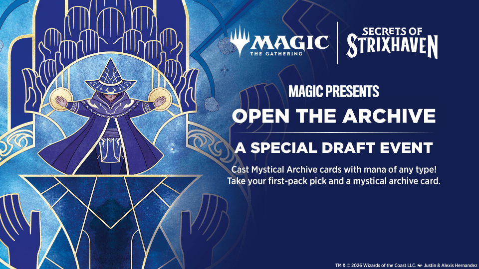 Open the Archive is a special Draft event where you begin with an emblem that lets you spend mana as though it were any color to cast Mystical Archive cards, enabling splashy, flexible gameplay. Finish with a winning record earn a blind-pack Mystical Archive challenge coin & keep rafting to try and find them all!