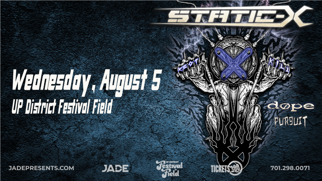 General Admission, Pit and Boxcar sections available; tickets starting at $49. Additional fees may apply. Event link: https://jadepresents.com/ event/2026-static-x-fargo/