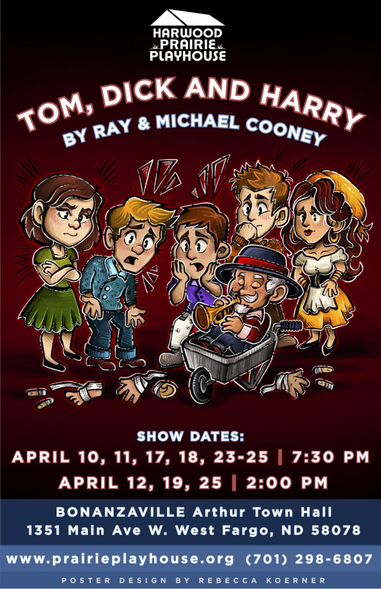 Harwood Prairie Playhouse will present our 2026 production of Tom, Dick and Harry, April 10, 11, 17, 18, 23-25 at 7:30 pm and April 12, 19, 25 at 2:00 pm.