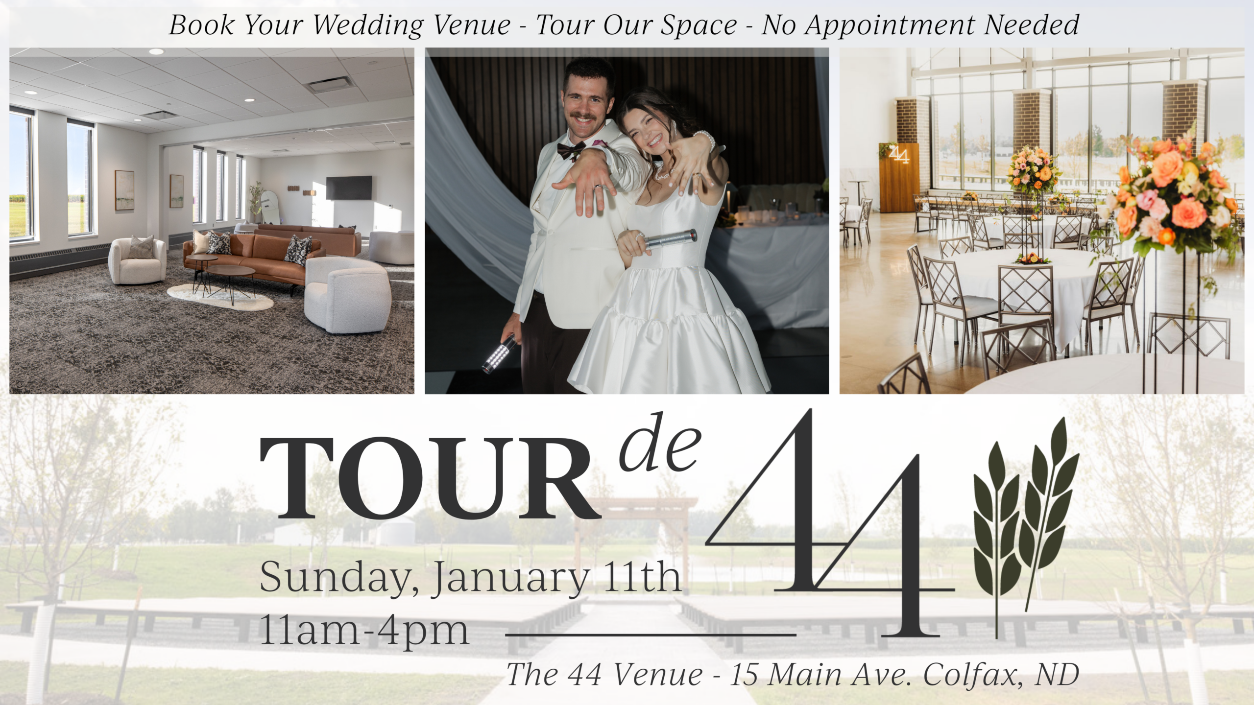 We invite you to join us for Tour de 44 — A relaxed, open house style venue tour designed to be a fun, easy-going, and a completely no pressure way to check out our space for your upcoming (or someday) wedding!