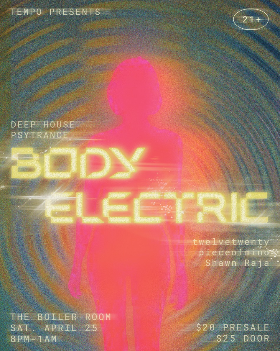 The Boiler Room Fargo 210 Broadway N, Fargo, ND, United StatesTEMPO IS BACK with a new venue and a fresh lineup of DJs! Join us for a night of mesmerizing visuals and hypnotic rhythms at The Boiler Room. Sound: Deep house, psytrance, Goa trance DJs: twelvetwenty pieceofmind Shawn Raja Shawn Raja is a Minneapolis-based sound artist specializing in Goa trance and techno, performing exclusively on vinyl. Blending psychedelic textures and rhythms, he crafts an immersive soundscape that will draw you in and keep you moving. Dress code: Think metallics, […]
