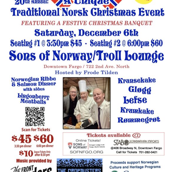 20th Annual Traditional Norsk Christmas Event: featuring a festive Christmas Banquet buffet! Including LIVE dinner music by Kyle Colby 4 –...