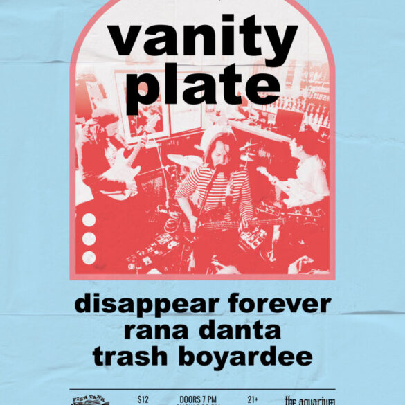 The Aquarium and Fish Tank Promotions are proud to present Vanity Plate w/ support from Disappear Forever, rana danta, and Trash Boyardee on Sunday, November 2.